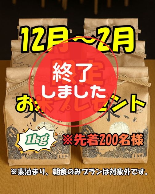 はなぞの温泉 花圃の里では、2025年12月から2026年2月の期間限定で「お米プレゼントキャンペーン」を実施しております。 プレゼントとしてご用意しているお米は、和歌山県産の新品種『にじのきらめき』1kgでございます。 なお、先着200名様限定となっており、数量に達し次第、誠に勝手ながら終了とさせていただきます。
